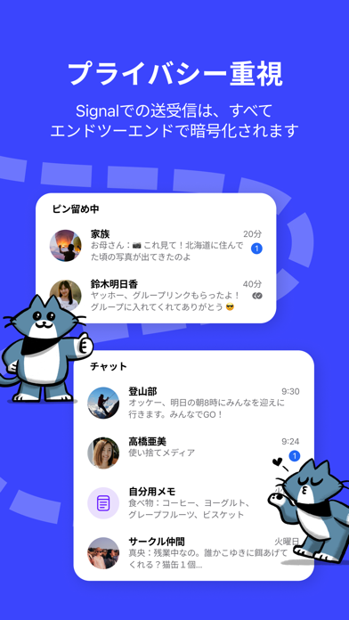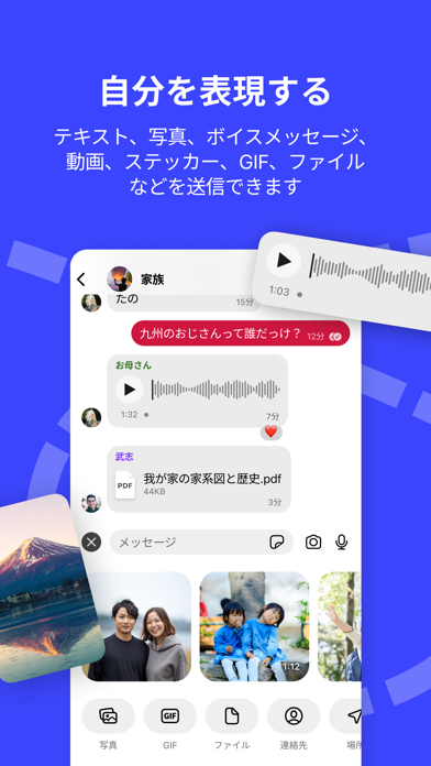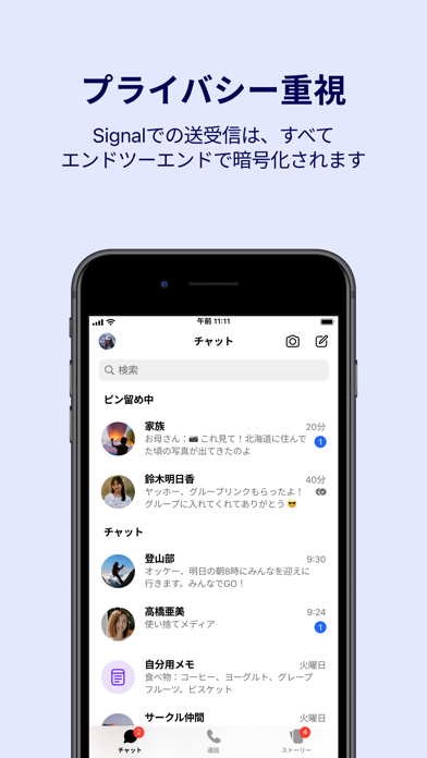 テキスト・音声・写真・動画などの送信がすべて暗号化されます。送信者と受信者だけが内容を知ることができ、外部からの傍受やデータ漏洩の心配がありません。プライベートな会話を守りたい方にぴったりで、大切な情報を安心して共有できます。
