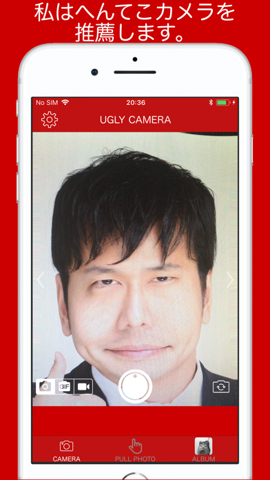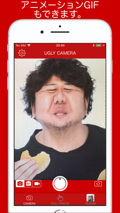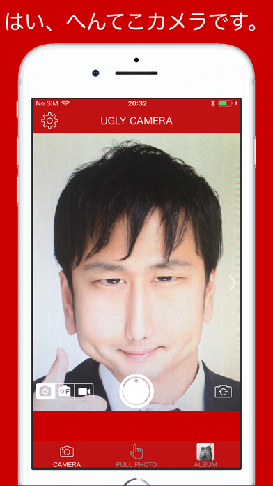 思わず吹き出してしまう変顔を実現してくれるカメラアプリです。アプリを開くと撮影画面が開くので、まずはあなたの顔を写してみてください。ねじ曲がった鏡のごとく、顔がぐにゃぐにゃに曲がって写し出されます。角度によって変顔が変わるので、ベストショットを見つけてシャッターを押しましょう!