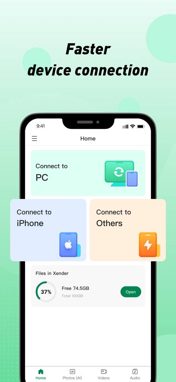 無線でほかのスマホやPCと接続し、ファイルの送受信ができます。iPhone同士は無線LANで、AndroidやPCとは二次元コードの読み取りで接続。ケーブルなどは必要なく、お手軽にファイルを送れます。