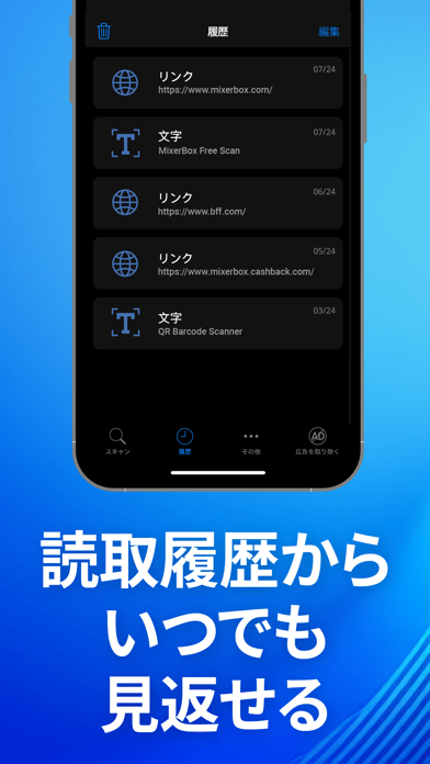 QRコードを素早く読み込んでアクセス 履歴の保存機能も