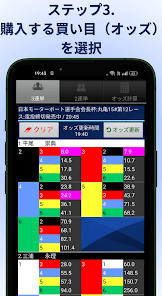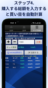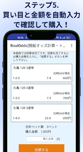 舟券のオッズをタップして、賭けたい合計金額を入力するだけで自動で配分を計算してくれるアプリ。投票IDを設定すれば賭けの入力も自動で行うことができ、締切直前でも迷わず効率的に舟券を購入できます。複数の舟券を買いたいときでも、手間なく配分できるのが魅力です。