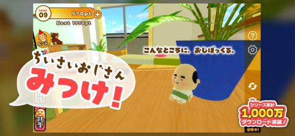 部屋中にいる小さいおじさん(おじぽっくる?)を探して捕まえるゲームです!
