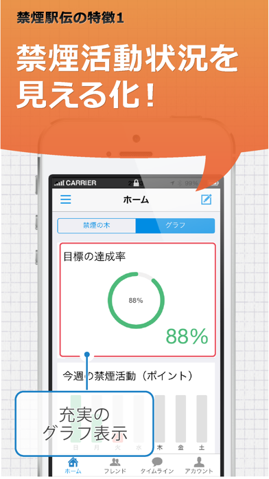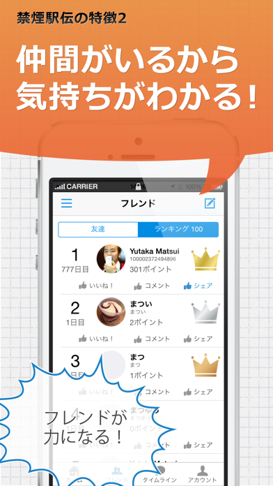 - 禁煙フレンドとともに禁煙を目指せる! 一人じゃないから頑張れる