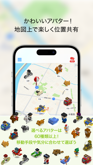 かわいいアバターがマップ上を動く 友だちの居場所がまるわかり!