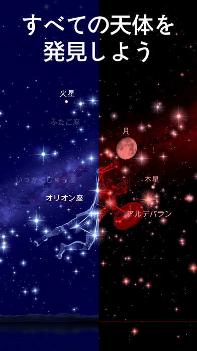 - ナイトモード搭載。星空と画面を見比べる際に、画面の光が残らない