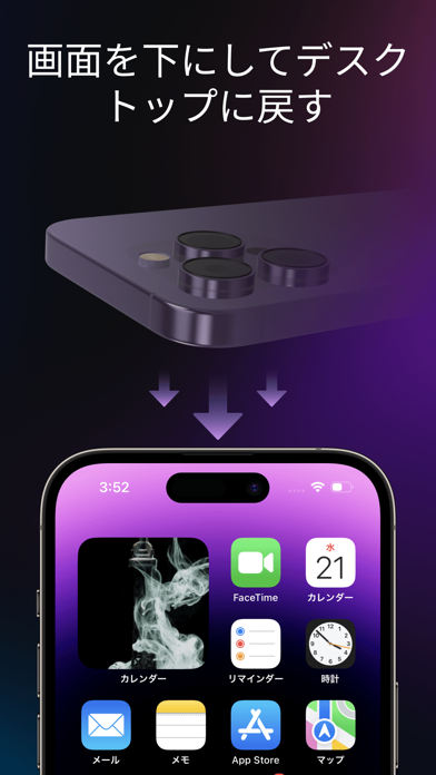 好きなタイミングで写真やビデオを非表示にできます。「フェイスダウンロック」機能を使えば、スマホの画面をふせる動作でアプリを停止しホーム画面に移動可能。家族や友達に急に話しかけられた場合でも、自然な動作でプライバシーを保護できるでしょう。