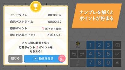 ナンプレにクリアすると応募ポイントを入手できます。動画広告を見ることでボーナスポイントを獲得することも。難易度の高いナンプレになるほどもらえるポイントが増えていきます。