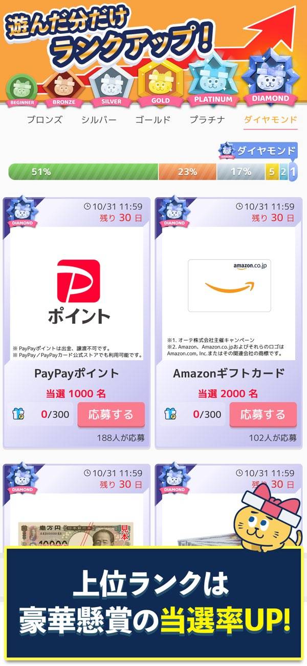 商品が当たる当たらないは別として、素直にゲームを楽しむならオススメします!
