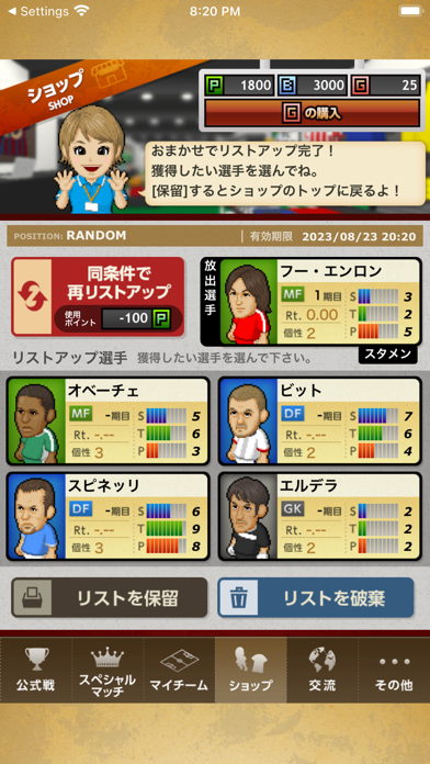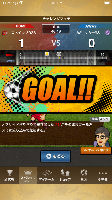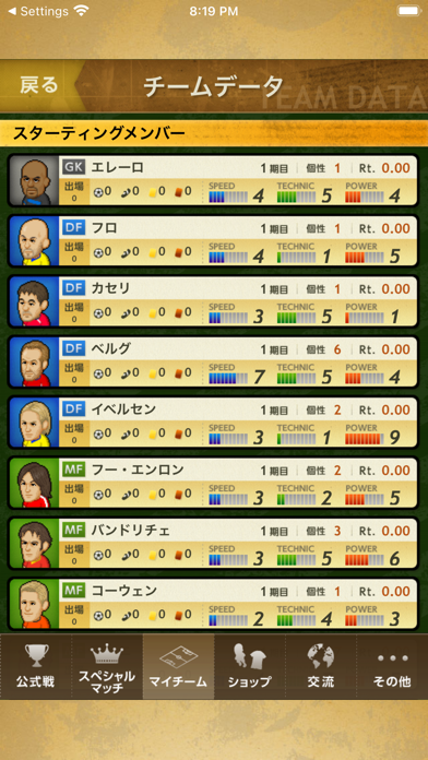 - 毎日自動で行われる試合を確認。結果を元にチームにテコ入れを