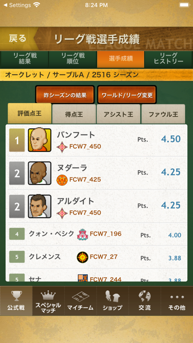 - 味のあるドット絵の選手たちは現実の選手を連想させる