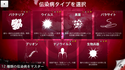 伝染病を自分でつくり地球上の生物を根絶させる事がこのゲームの目的です。ウィルスの種類が豊富で、また現実では起こり得ないようなウィルスの種類があります。根絶のさせ方が色々あり楽しめます。難易度が選べ初心者からでも遊べる。120円なので是非購入してみてはいかがでしょうか‼︎