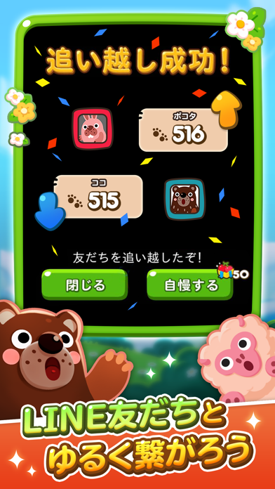 進化したLINEのパズル とぼけた顔の動物たちが賑やかにスパーク!