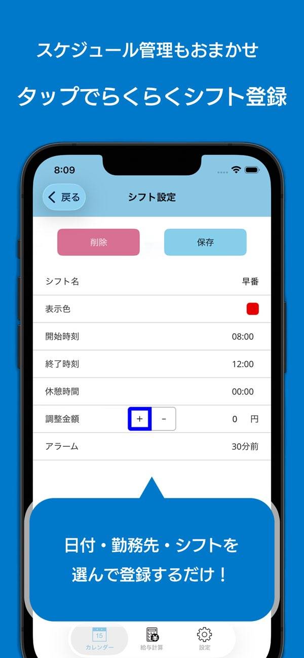 - シフトを選んでカレンダーに登録するだけ。使いやすさが特徴