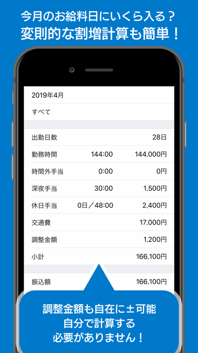 シフトを入力するだけで、簡単に給料計算してくれます。