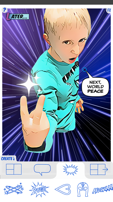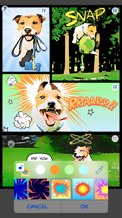 FXを設定することで、写真をアメコミ風の画像に加工できます。選択できる写真はフレームの形に依存しますが、4枚以上の写真を設定できるものがほとんど。複数の写真を組み合わせてアメコミ風加工を楽しんでみましょう。