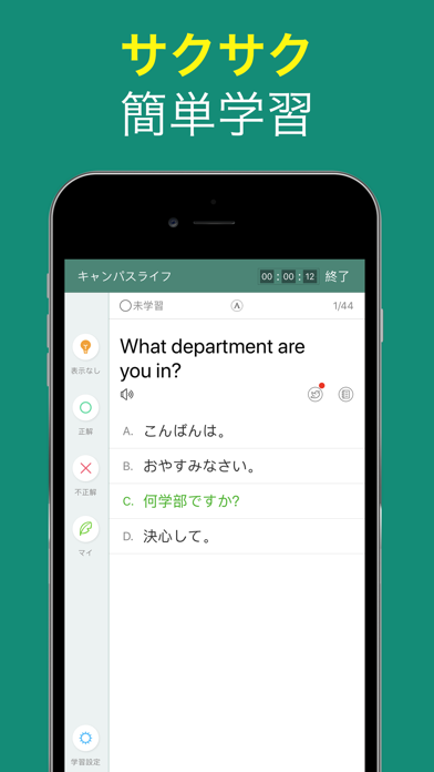 - フレーズの読み上げ機能が利用でき、電車やバスなど通学中の学習に最適
