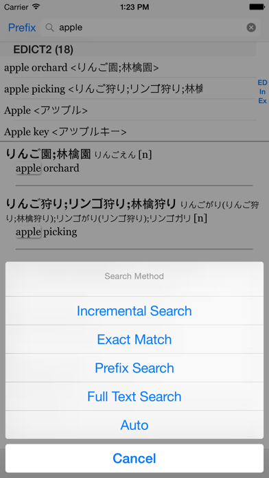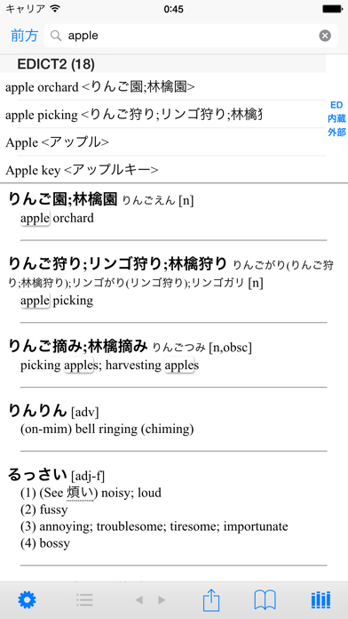 - 自動検索や前方一致などの検索方法に対応した電子辞書アプリ