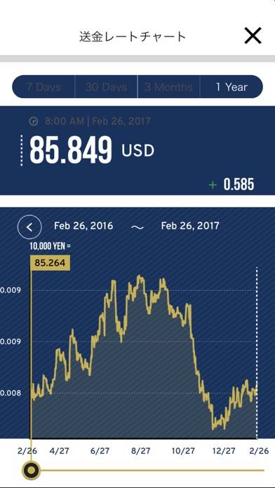 ユーザーが設定した目標為替レートに到達すると、プッシュ通知でお知らせ。これにより、常に市場を監視する手間が省け、タイミング良く送金や資産運用の判断ができるようになります。