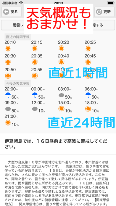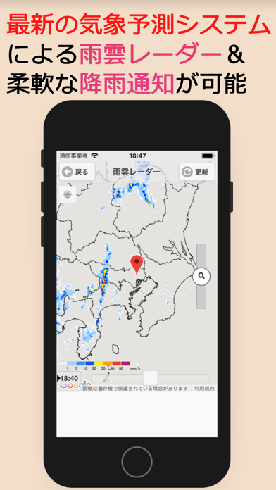 - 気象庁が使用しているデータを使用。急な天気の変化も事前に把握できる