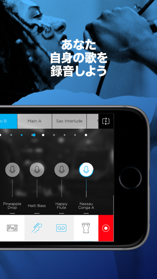 - 録音機能を使って、曲に合わせてボーカルや自分の演奏を入れられる