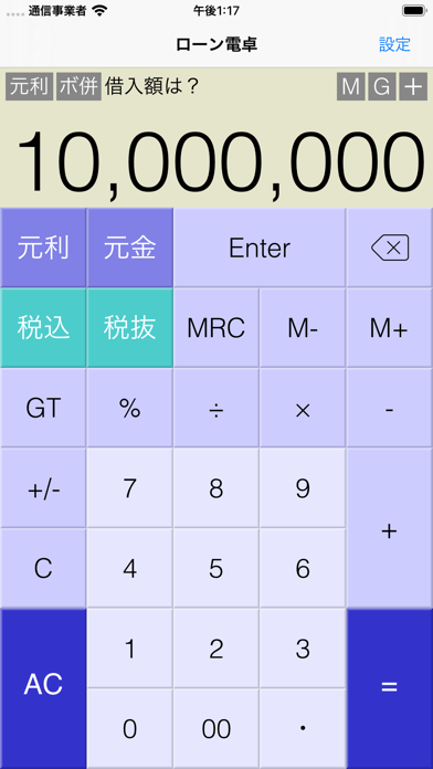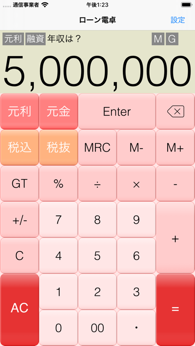 - 15桁表示で大きな金額も見切れにくい。計算結果のコピー&ペーストにも対応