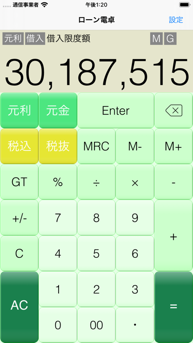 - 通常の電卓にローン計算機能を付けた電卓アプリ