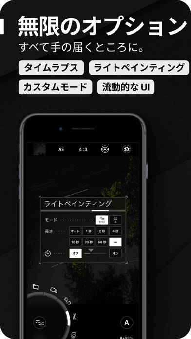 プロフェッショナルな写真や映像制作が手軽にできるのが特徴。直感的なUIで、使いやすいのが嬉しいポイント。写真やビデオ、ライトペインティング、タイムラプスモードなど用途に応じて活用しましょう。