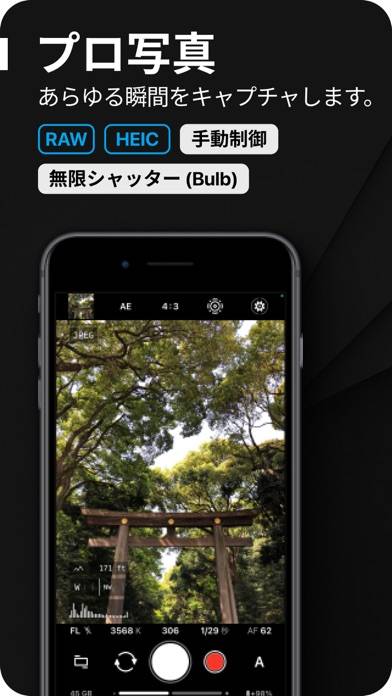 オート、プログラム、マニュアルなどの撮影モードを搭載。露出やISO、シャッタースピードなどを調整できます。ProRAW、RAW、HEIC、JPEG形式に対応し、さまざまなシーンで活躍します。ナイトショットも綺麗に撮影できますよ。