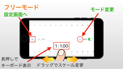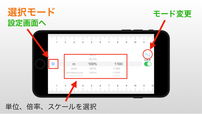 - 三角スケールのように、縮尺を使い分けて長さを測れる定規アプリ