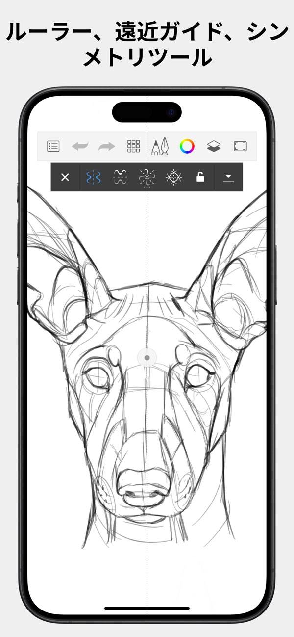 絵をよりキレイに仕上げるサポート機能で、初心者でも絵を描きやすい仕様。パースの線を自動で引いてくれるパースガイドや、描いたものを左右対称にする対称機能で、丁寧な作画ができるようになります。