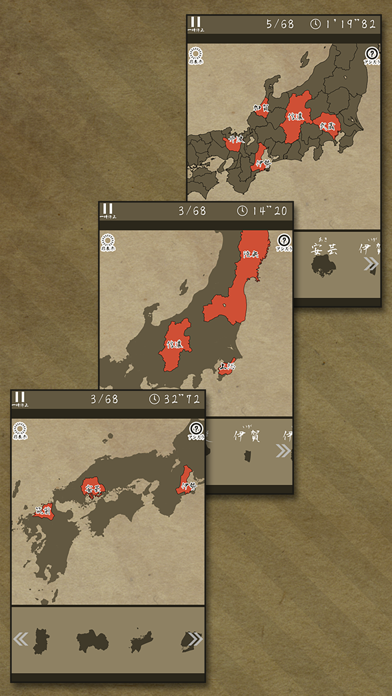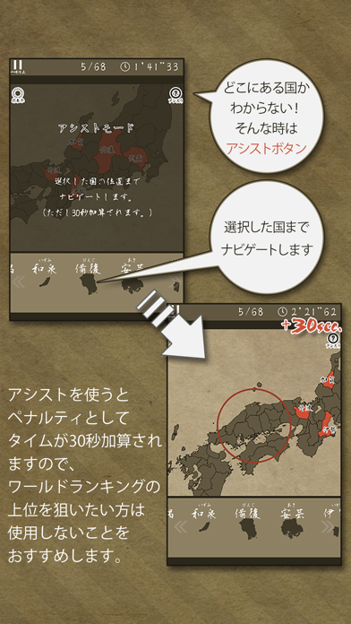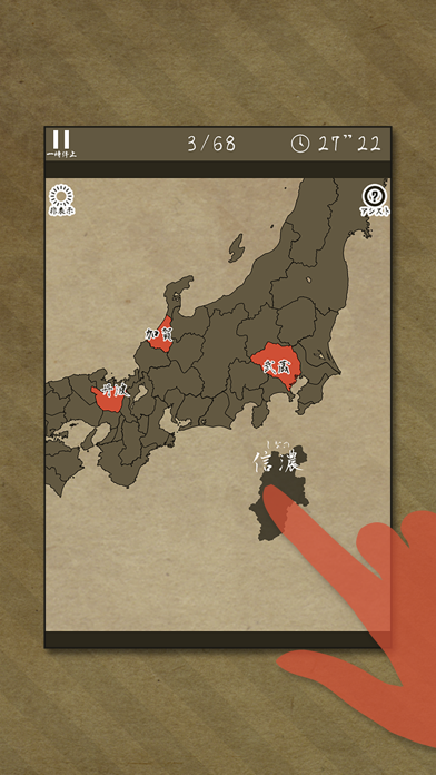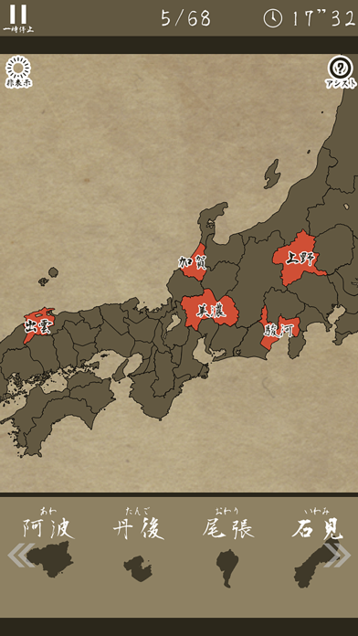 戦国時代とかテーマにしたゲームや漫画によく出てくる旧国名を、パズル形式で学べる面白いアプリ。