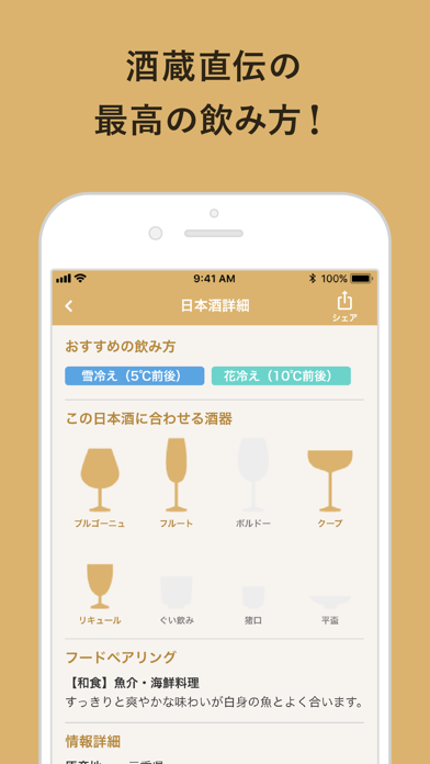 - 日本酒の味や合うおつまみなど、詳しい情報がわかる情報アプリ