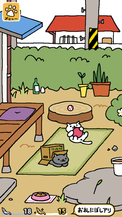 - おもちゃやエサを設置して、猫がくるのをのんびり待つ放置ゲーム