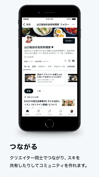 自分の思いや視点、感じたことを文章、写真、イラストなどさまざまな形で発信できます。作品を公開し、ほかの人の反応を得ることで、自分自身の成長やスキルの向上につながります。気軽に投稿できるので、ライターや写真家、イラストレーターなどにおすすめ。