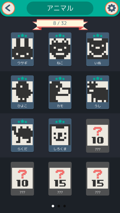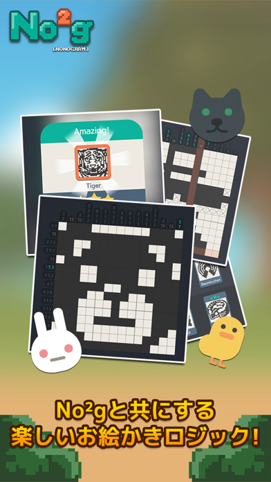 指定された数だけマス目を塗りつぶす、オーソドックスなイラストロジック。すべてのマス目を塗ると、かわいらしいイラストができあがります。動物や食べ物などさまざまなジャンルがそろっており、難易度も10×10~30×30から選べます。