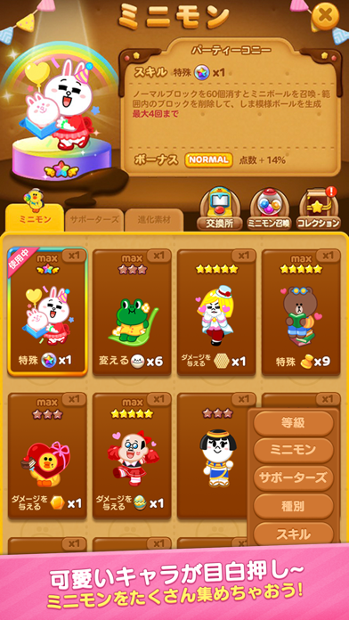 個性豊かなLINEキャラクターの3マッチパズルが新しくなりました♪ミニモンが星5まで成長するので、友達に追いつく大チャンスですよ。今から始めても遅くない大幅アップデートです。