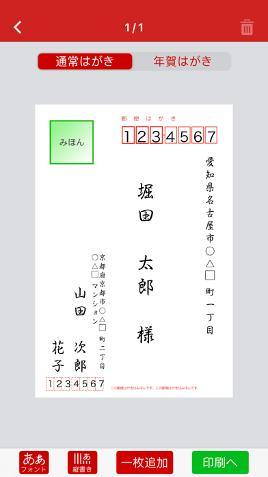 宛名面もスマホから住所を読み込んで作れる