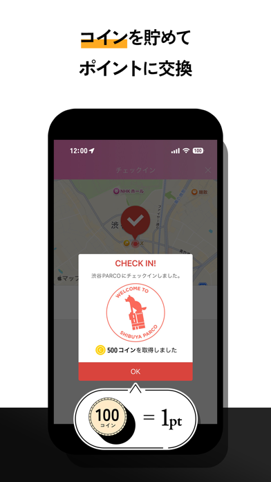 - パルコにチェックインし、館内を歩くだけでお得なコインをゲットできる