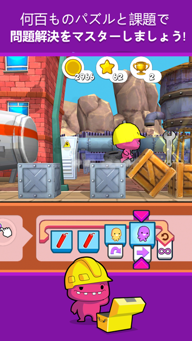 - パズルゲーム感覚でステージをクリアするにつれ、プログラムが学べる