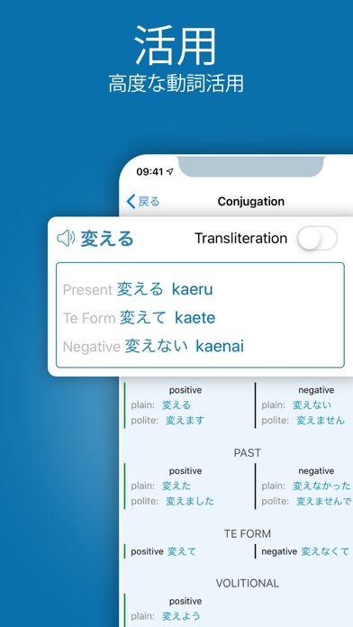 - 文中における単語の使い方がわかる。同義語や動詞活用など情報が充実