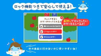 バナー広告が一切表示されないため、誤タッチを心配する必要がありません。また購入コンテンツにもロック機能があり、子どもが誤って購入してしまう心配なく一人でも遊ばせられます。