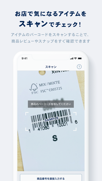 お店で気になった商品の詳細をすぐに調べられる便利機能も備わっています。商品のバーコードをスキャンするだけで、商品レビューやほかの人の着こなしをすぐに確認可能。これなら商品選びも購入の判断も、迅速に進めることができますね。