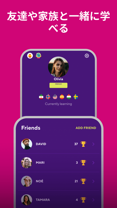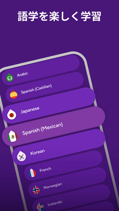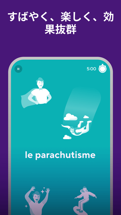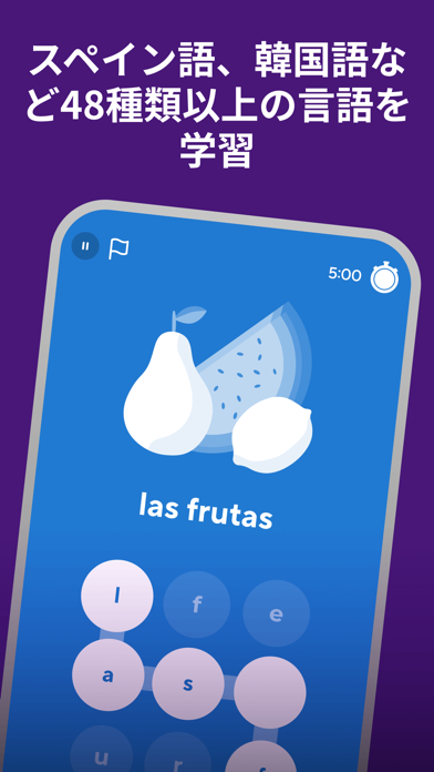 1日5分からのんびり外国語を学べるアプリです。対応言語は50以上と豊富。スタイリッシュなイラストが描かれたクイズで、楽しく学習できます。基本の単語から学んでいくので英語初心者向け。コツコツ勉強して上級者向けの問題に挑戦しましょう。