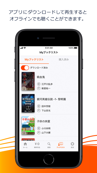 SFやミステリ、ファンタジーなどの小説を、プロ声優の朗読で楽しめる音声配信アプリ。無料で聴ける作品もたくさんあり、気軽に物語の世界へ飛び込めます。作品は事前にダウンロードできるので、外出先でも通信を気にせず聴けるのもうれしいポイントです。