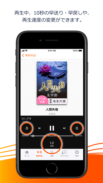 - 再生速度も自由に変えられて、集中したいシーンはゆっくり、ながら聴きのときは速め再生ができる