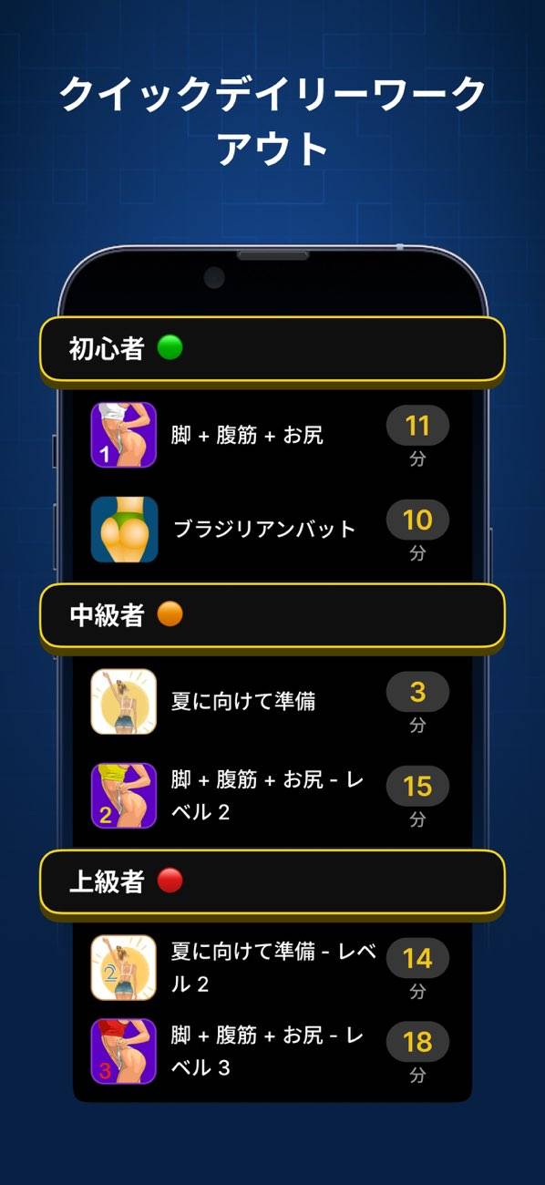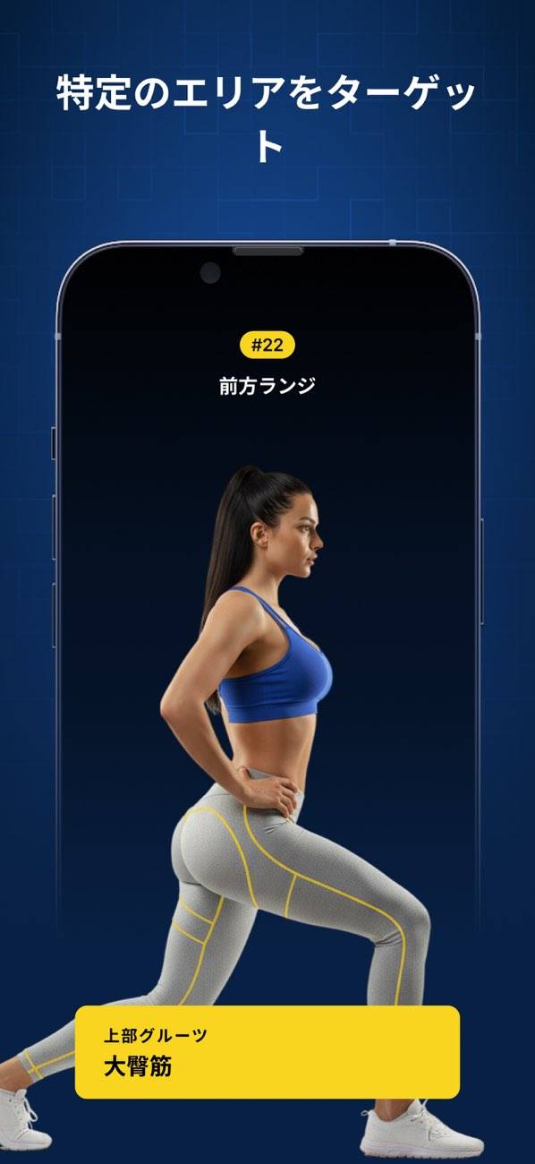 本アプリには臀部をシェイプアップさせるトレーニングがたくさん。器具を一切使わないので、いつでもどこでもトレーニング可能なのが嬉しいですね。