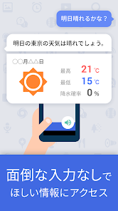Yahoo!公式の音声アシスタント。「明日の天気は?」「渋谷から新宿まで」という風に音声で質問すれば、的確に答えてくれます。