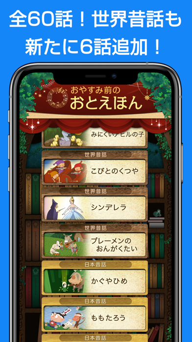 有名な昔話やおとぎ話をアプリで読み上げてくれます。絵もついているので子供も飽きません。おやすみ前に子供に読み聞かせています。