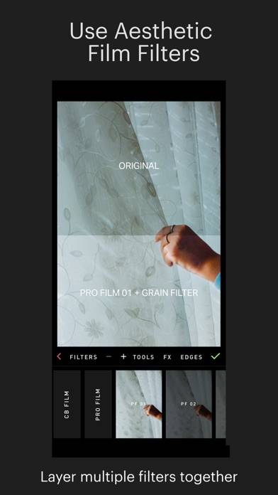 このアプリの特徴は、豊富なフィルターがそろっていることです。その数は、80種類以上。フィルム感のあるもの・ダスト系のもの・白黒系のものなどさまざまです。露出・コントラストなどの調整ツールも豊富なので、自由自在に編集できます。
