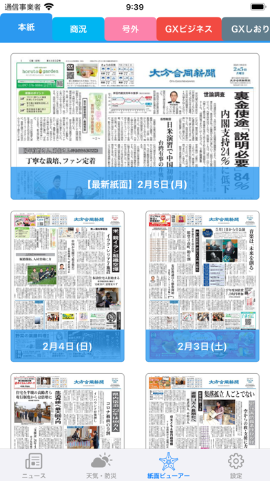 - 紙面ビューアー機能で大分合同新聞をそのまま読むことが可能